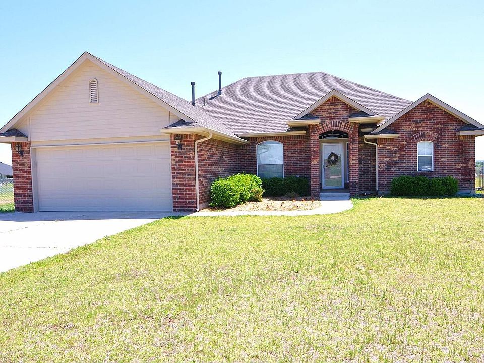 Listing agent: Chris Allen, Call 405-509-9350 for information. Upon walking in, this home in Piedmont has tall ceilings at 10 feet that make the open floor plan seem even bigger! Formal dining room is open and may be utilized as a study, lounge, or more. An abundance of windows ensures that the natural light comes streaming in and illuminates how warm the woodwork is throughout. The living room features a built in entertainment center above a cozy brick fireplace. Master bedroom is on one side and the other two bedrooms are on the opposite side of the house providing privacy for the master bedroom. Walk-in closets and a bathroom with jacuzzi tub and double sinks feels like a spa! Walking back through, the casual dining into the kitchen has tile floors and the sun comes shining through in the morning. Kitchen has hard surface faux granite counter tops and backsplashes for easy cleaning and the stainless steel appliances bring a clean feel. This home for sale in Piedmont is within 5 miles of both NW Expressway and the Kilpatrick Turnpike for easy acces to wherever you may go! At this price, it's sure to go fast so please call 405-509-9350 with any questions!