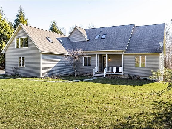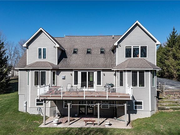 Nested on the slopes of the Tuscarora Valley with three season lake views and curtained by spruce and maple woods, this large family home embodies the best of country luxury. With out the door access to miles and miles of trails, Tuscarora Lake, and a popular restaurant, this home is a sanctuary of serenity and an opening to adventure. Filled with sunlight and silence, the hearth-warmed great room flows to the cherry kitchen and DR. The home also boasts spacious 1st floor master suite, mudroom-laundry rm combo, large deck, and an additional 4 generous bedrooms with ample storage. Luxurious 7 zoned radiant floor heat, water softener and utility rooms supply house with year round comfort and functionality. The grounds include large, fenced-in raised garden beds and additional flower beds. The walkout bsmt w/roughed-in bath contains a partitioned room--perfect for an office or overflow bedroom--is the ideal space for game room or creating a separate apartment or guest suite. Ten minute drive to idyllic Cazenovia- and in Caz School District. Must see!
