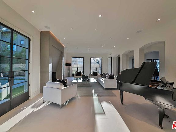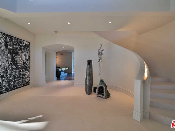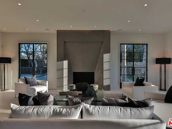 Modernist French traditional home w/in conveniently located + little-known, but highly coveted, 11-estate, architecturally diverse, guard-gated community. Extensively remodeled + enlarged to provide the style of living desired today, the 6-bed, approx 9,300 SF home sits on a nearly ¾ acre lot at the end of a cul-de-sac w/jetliner views of the twinkling lights. An abundance of custom metal windows + doors bathe the rich, wide-plank Oak floors in warm natural light. The eat-in kitchen (w/brick-clad, triple-barrel ceiling, dual islands + La Cornue range) and the adjacent, generous family room (w/bar + climatized wine wall) serve as the hub of the house + open to the expansive lawns + swimmer's pool. Downstairs is a formal living room + dining room, spacious den, suede-paneled office + guest suite. Upstairs are five bedrooms, incl the master suite w/vaulted ceiling, spa-esque bathroom + boutique-like dressing room. Oversized 3-car garage, add'l off-street parking; sculptural staircase