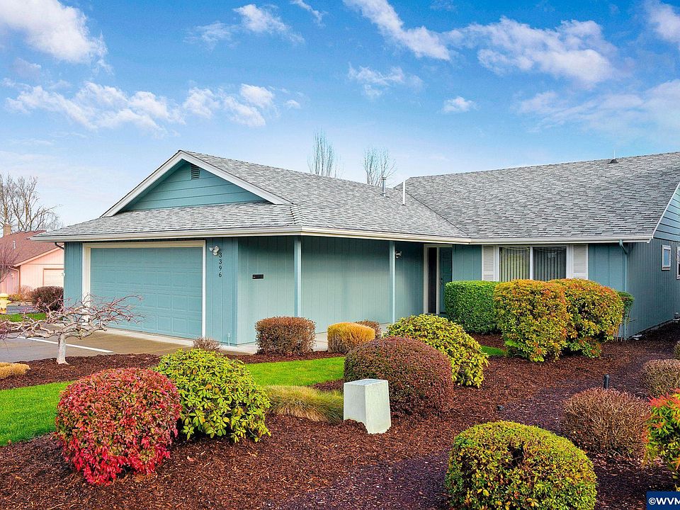 Salemtowne 55 + Community. Light and Bright- Lovely well maintained updated home. Newer wood floors, Corian counter tops, SS appliances, Kitchen cabinets with roll out drawers, Fireplace, newer doors through out, carpet in bedrooms. Newly painted inside and out. Beautiful landscape yard, HOAs $1350 Transfer Fee $3375, Golf $450, Spouse $250