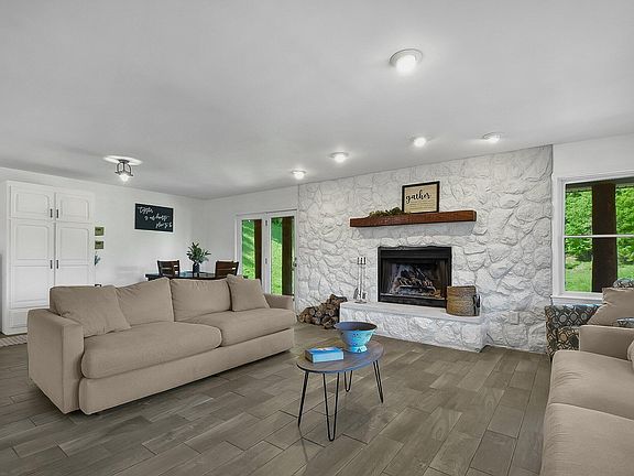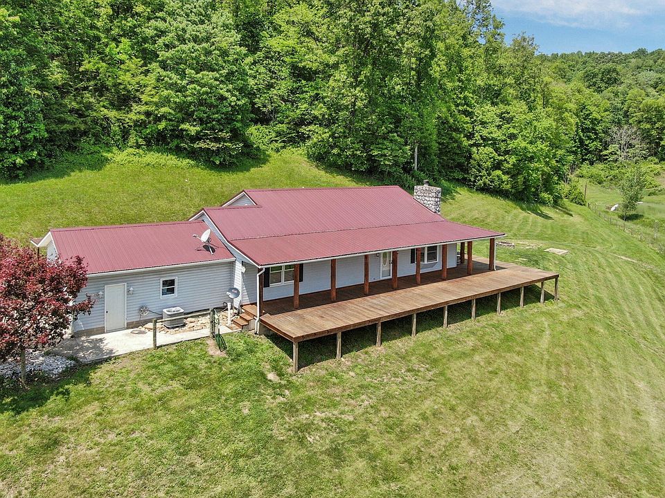 Wow, 51 acres of wooded trails, a stocked 3/4-acre fishing pond, and a beautiful 3-bedroom 2-bath home with lots of recent upgrades on public water and sewer. In addition, there is a horse or cattle barn suitable for goats or sheep, 5 acres of electric fenced pasture, a party barn too along with a 2-car carport. The concrete driveway is maintenance free to the house and the gravel secondary driveway leads to the barns. The 20x40 party barn comes w/a concrete floor, electric and water...a great space for entertaining. New roof on the house 2019. The 1600 sf porch is a gorgeous place to watch the sunset! Come see today!