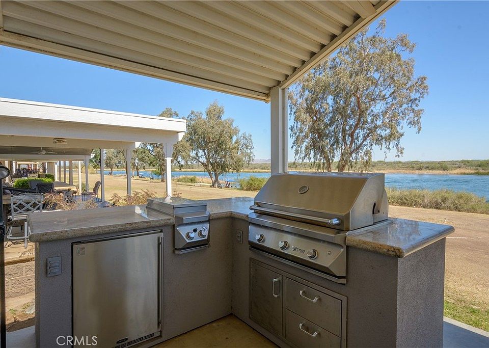 Quality, spaciousness, and incredible views are to be found at this Beautiful 3 bedroom, 2 bath, large 6 car garage with 4 tall roll-up garage doors and 8 car driveway HOME in Glades Hidden Valley neighborhood directly ON THE RIVER! Don't wait on this one! Gorgeous custom kitchen with granite counter tops, a large Pier for counter stools, built-in wine frig., gas cooktop, inset wall ovens, multiple pantries, a large utility sink next to the laundry room (mud room) custom recessed lighting and quality appliances. This home feels twice the actual 1809 sq. ft. thanks to the gorgeous windows including high ceiling inset windows in the living room, an ideal floor plan and oversized rooms. Real custom hand made maple cabinets, in addition to custom cabinets to match are all included. Hard floors in like new condition match perfectly. Custom White French doors with blinds between the glass and side lights take you out to the incredible RIVER FRONT porch and incredible sunrise views. Enjoy a built in BBQ island with outdoor built-in beverage refrigerator on the patio. There is plenty of room to relax and dine all while enjoying watching boats go by. River front offers beaches all along the waters edge directly in front of the porch with a huge stretch of grass. Bathrooms are roomy with great storage cabinetry and are light and bright. Hidden Valley is a great place to vacation regularly or live full time year round. Fun holiday events organized by the neighbors give this neighborhood that old fashion feel that so many of us crave. Drive your offer road car or motorcycles right out the garage to the incredible desert or awesome sand dunes. Drop your boat from 2 launch ramps and if you need gas, the park offers it on the premises too. Sunsets, good friends and a lifetime of memories await.