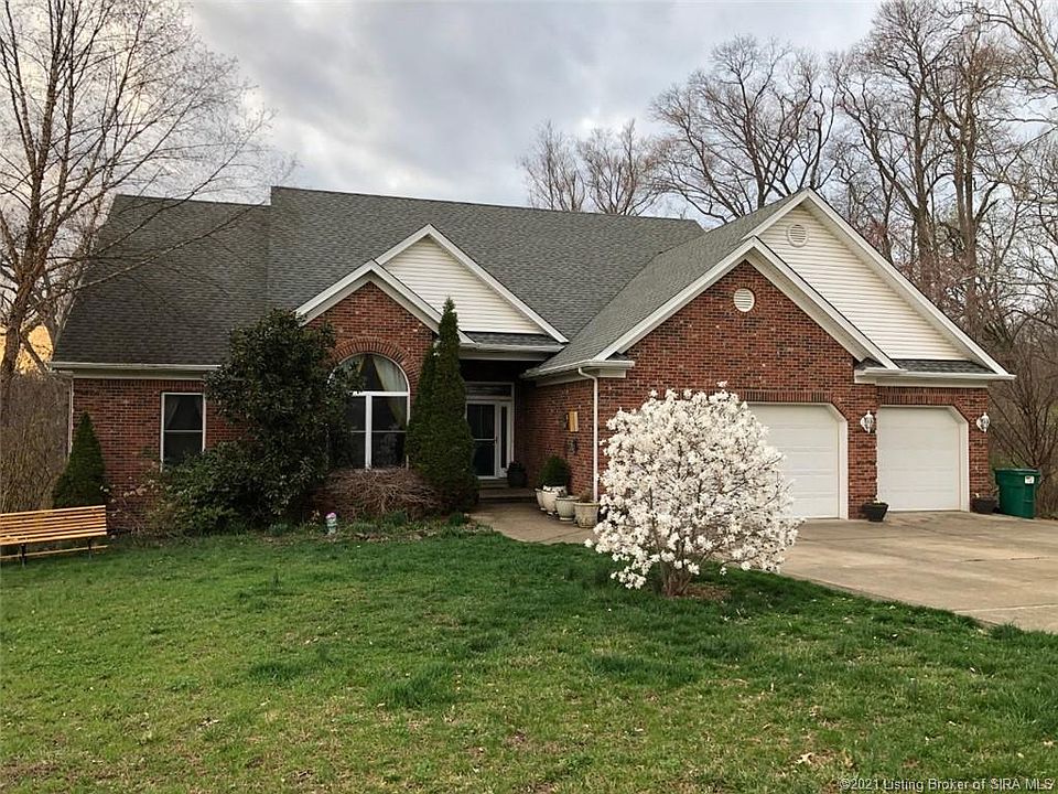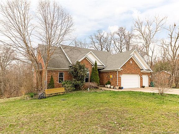 Desirable Lanesville school district! This custom home offers massive space without pretention. Cozy details like tiger oak mantel on fplc and matching columns to the dining room. 10ft ceilings on main level and 9' ceiling in basement. Brazilian Cherry hardwood floors, formal dining room and the spacious kitchen with island, breakfast area and large walk-in pantry are a few of the desirable features here. There's a home office on the main level, which offers serene views from the huge windows (what a great place to work from home?). There's another office/flex space area (or 5th bdr, but no window) downstairs. In this lower level there's a full "IN-LAW SUITE" including kitchen/family room area, enormous bedroom & full bath. The walkway from the front leads all the way to the lower back entrance. Here are a few more specifics: dual fuel HVAC, triple wide driveway to 3c garage, central vac, security system, water filtration & 2x6 exterior construction. As spring approaches, you'll have a spectacular show of blossoms from the ornamental plants, bushes and fruit trees. 1yr AHS warranty to the buyer. This property is located 1 mile off I-64 interstate exchange and about a 20min drive to Louisville!