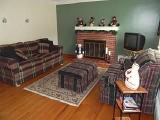 Must see this spacious brick home on wooded lot! Huge kit w/wood cabinets and eat-in area.Living room w/fireplace. Large bedrooms, partially finished bsmt. Bathroom on each floor. Patio w/covered beadboard, ceiling & columns