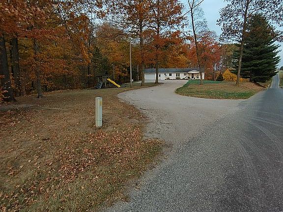 This 4 bedroom 3 bathroom house sits on 4.403 wooded acres this ranch style home features a fully finished walkout basement, with 2 bedrooms, (both with windows), a bathroom, 2 sinks, and a shower, wood furnace that very efficiently heats the entire home (with backup furnace), nice size storage room, and a family room aera. Main level features, 2 bedrooms, one is the master suite with walk-in closet, and bathroom attached, 2 bathrooms, big kitchen with custom B&L cabinets, island that seats two, and a built in corner breakfast nook, for in kitchen dining, as well as a big spacious dining room, family/living room with a big picute window over looking the creek and woods. an office, spacious laundry room with sink, cabinets, and lots of storage. 3 storage closets throughout, and a built in cubbies, and hooks for coats, shoes, bags,& etc. in entryway. has 2 attached garages (one on basement level, and, one on main level) an 8'x30.5' workshop attached to basement garage, 2 sheds, one on upper drive 10'x12', and one down across creek is 6'x8'. outside also features a sing set, in-ground trampoline, fire ring, garden, 2 bridges, and trails though the woods.
