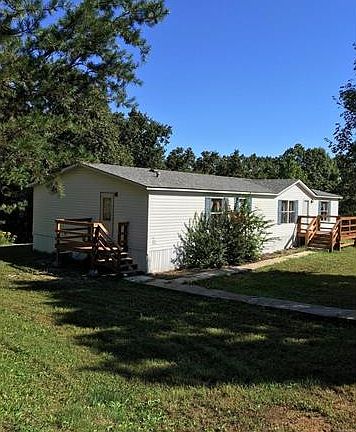 Have a Look at this roomy 3-bed, 2-bath doublewide on nearly 5 wooded acres. If you've been looking for a place to hang your hat, here it is! With nearly 1800 sq ft of living space, there will be room for everyone. Spacious living room features cozy corner fireplace and plenty of room for all your things. Divided bedroom floor plan features master suite with big full bath, double vanities, separate tub and shower, walk-in closets. Kitchen has plenty of cabinets, breakfast bar, pantry and dining area. Affordably priced at only $85,000. Call Today, before this one Gets Away!