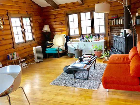 Totally private log home on nearly 15 acres. This property offers woodlands as well as a year round stream and Pond. Every room in the home has a cathedral ceiling, ceramic tile in the kitchen and bath and the rest of the floors are beautiful bamboo. Wood-burning stove in the living room as well as the large master bedroom. The naive stone patio.