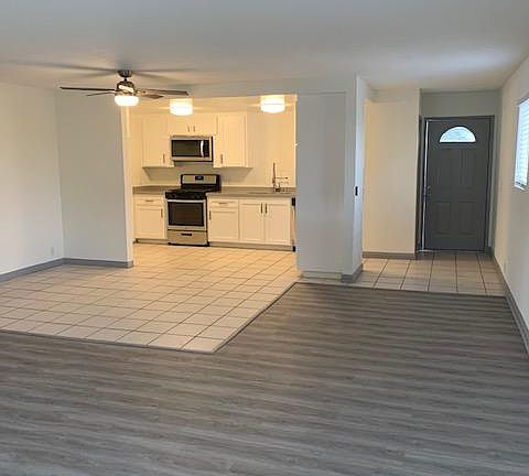 Be the first to live in this beautiful, newly remodeled 2 bed, 2 bath, upper floor apartment located in the Lantern District of Dana Point! Fully upgraded kitchen with brand new appliances (stove, oven and microwave and sink) with lovely gray quartz countertops that is open to the large living space. The kitchen area has plenty of space for a dining table. The living area and bedrooms have brand new aqua guard flooring in a neutral gray tone and fresh paint. Both bedrooms feature spacious walk-in closets and new ceiling fans. Each new bathroom boasts a gorgeous shower with a river rock bottom, rain shower head, and new vanity with quartz counter. The primary bedroom has an attached bath with dual sinks and a sliding door to the balcony. The balcony runs length of the unit between the family room and primary bedroom. Unit includes a single car garage with an opener. There is shared laundry for the building. Owner pays for water and trash. Renter is responsible for electric, gas and internet. Small dog (under 20 lbs) or cat is considered with a $500 refundable deposit upon condition of the property at termination of lease agreement. This is a non-smoking property. One year lease with $3000 deposit and first month's rent is required for move-in.