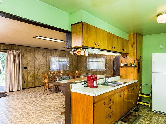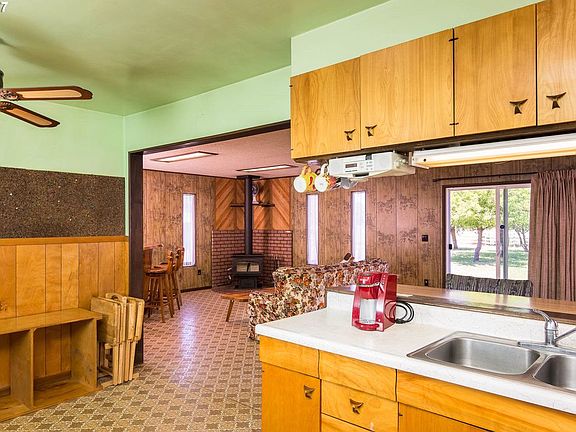 Priced well below appraised value! Tucked away in a friendly neighborhood, this picturesque country property is ready for you! Situated on 5 acres, it features a quaint home with huge family/dining room with new woodstove, open kitchen and 3 bedrooms. Outside is a large shop/garage w/220, carport and outbuildings. Lots of fruit trees and room for your horses, goats or gardens!