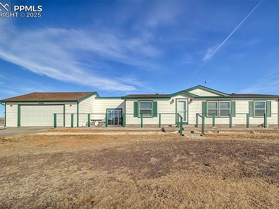 Your Rocky Mountain Retreat Awaits! Escape to the tranquility of the countryside with this stunning property nestled on a hill, offering breathtaking, unobstructed views of the majestic Rocky Mountains. This charming home sits on a sprawling 40-acre double-gated estate, ensuring privacy and peace. A well-maintained asphalt entrance leads you to the property, transitioning to a concrete driveway and walkway that gracefully guides you to the inviting residence. This comfortable 1,372 square foot home features 2 bedrooms and 2 bathrooms. The spacious kitchen boasts ample cabinet space and a large island, perfect for culinary enthusiasts and gatherings. Enjoy outdoor living at its finest with a 15x16 concrete patio ideal for barbecues, and a sprawling open concrete porch where you can relax and soak in the panoramic mountain vistas. A convenient enclosed breezeway/mudroom connects the home to the detached 2-car garage. Beyond the home, discover a remarkable 50x60 insulated barn, complete with 4 pasture entrances, drive in barn entrance, concrete flooring, a 20x20 tack/storage room, and electricity. The property is thoughtfully fenced and cross-fenced, creating 3 distinct pastures, complemented by 2 loafing sheds. A prepared 140'x250' riding area caters to equestrian lovers. This is more than just a home; it's a lifestyle. Don't miss your chance to own this piece of Colorado paradise!
