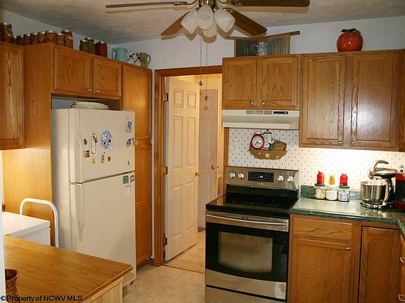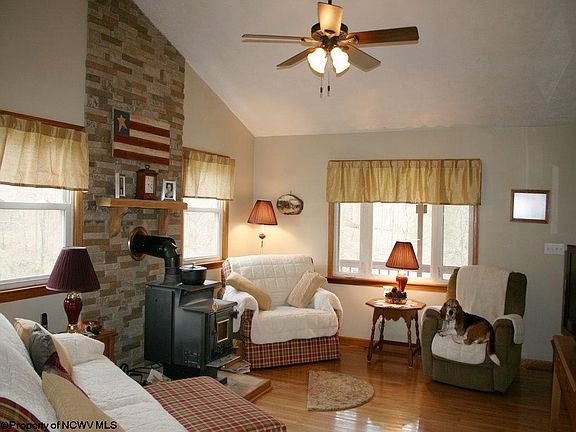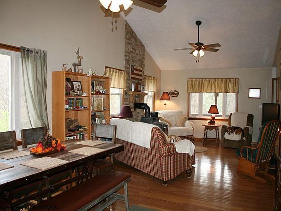 Total privacy at the head of the hollow! 137+ acres with great hunting, tons of wildlife, tree stands, small hunting cabin and a beautiful 12' deep stocked pond. Clean and comfortable modern 2 BR, 1 BA with a full unfinished basement for expansion. Gorgeous hardwood floors, woodstove in living room will heat the entire home, built in bookcases and wonderful porches to enjoy life! 5 garage bays with concrete floors, openers and more. Center Point............$295,000