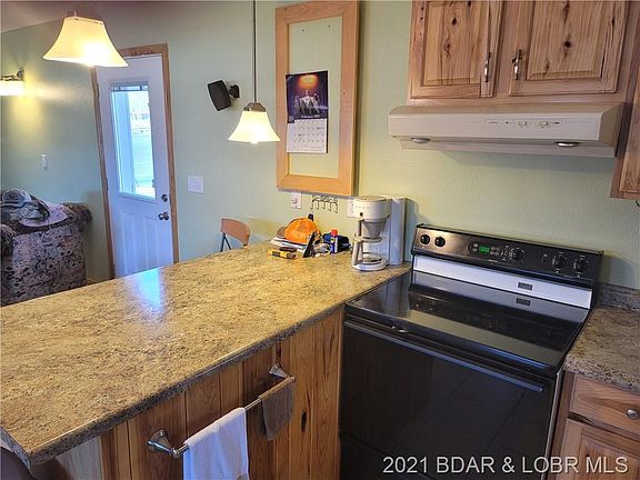 Very cute cabin sitting on a beautiful level lot at the 60 MM. Beautiful quiet covered front porch with two ceiling fans that overlooks the lake, Perfect place for a hot cup of coffee to start your day. No steps to the covered dock and floating dock. The inside is the open living with vaulted ceilings with a cozy fireplace to warm your feet. Shed outside with a lawn tractor and porch seating. Don't miss out on this cozy private home away from home. Room to build onto if needed.