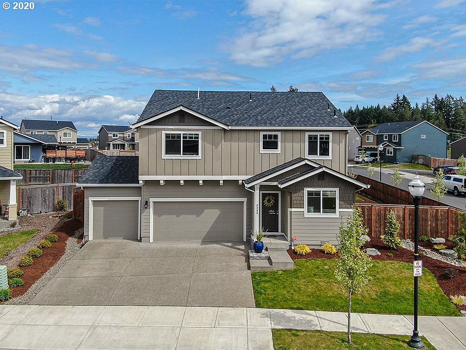 Like new 2-story across from Ridgefield High School! Meticulously maintained, this home boasts engineered hardwood floors, kitchen w/slab granite counters, gas range, island, pantry, living rm w/corner gas fireplace. Also on main - den/office. Upstairs master suite w/soaking tub, walk-in closet, 2 additional bdrms, lrg 4th bdrm/bonus w/walk-in closet, laundry rm. This corner lot is fully fenced & beautifully landscaped. Enjoy walking path to new middle school & sports complex! Please see video!