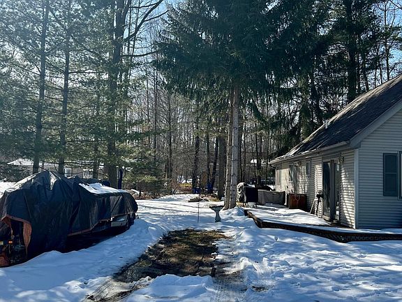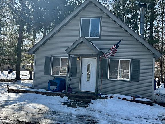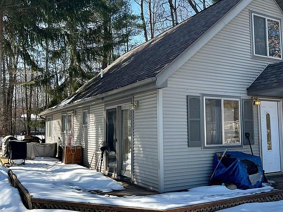 This would be perfect for a starter home or use as the perfect ''up north'' retreat with an added back addition that offers extra space and lots of storage in this 2 bedroom, 1 full bath and 1 3/4 bath recently updated chalet located close to the lake, not far from the trails and just a few miles from the expressway (127) a newly cleared front lot with added second driveway to accommodate a circle drive that also has been covered in crushed limestone. Newly painted walls and newly installed laminate wood flooring throughout. A full remodel in the full bathroom, newly installed and updated ceiling fans with light fixtures, a newly added dishwasher, large new pellet burning stove sufficient for whole house heat. There is more to love about this chalet and Too much to List! ! Is A must see