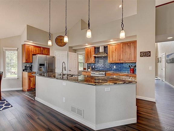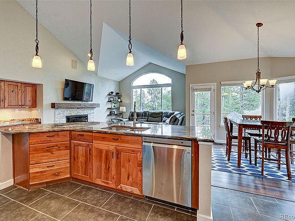 Welcome to this stunning mountain home located in the heart of Evergreen. Situated in the highly coveted neighborhood of The Woods in Tanoa, this residence offers the perfect combination of privacy and convenience. Nestled on a private cul-de-sac, this home features a great room with soaring ceilings, a cozy gas fireplace, and exquisite dark woven bamboo hardwood floors. The updated kitchen boasts granite counters, Brazilian Cherry cabinetry, a dual fuel LG gas range top, double ovens, and has access to a large deck. The primary suite, located on the main level, offers an ensuite 5-piece bath with heated floors and a spacious walk-in closet. Upstairs, you'll find two generously sized bedrooms with a Jack and Jill bathroom and separate sink areas. New carpet has been installed on the main & upper levels. The lower level provides ample additional space with a large family room, a huge playroom, two bedrooms, and a bathroom. Stay comfortable year-round with the New American Standard natural gas forced air furnace and AC, installed in 2021. With a 3-car attached tandem style garage, there's plenty of room for vehicles and storage. Don't miss the opportunity to call this mountain retreat your home.