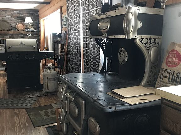 Unique 2 bed, 1.5 bath house on 15.98 wooded acres. Large wrap around deck is great for entertaining and enjoying the beautiful pond and mountain views. Rustic cabin feel inside. Open living and kitchen area with large rock fireplace, for cozy warmth in winter months. Plenty of room to work in the shop plus room left over for RV, boat, snowmobiles & all the toys. Full concrete floor, plus extra storage under the deck for more storage! Secluded and peaceful living. Appointment only!