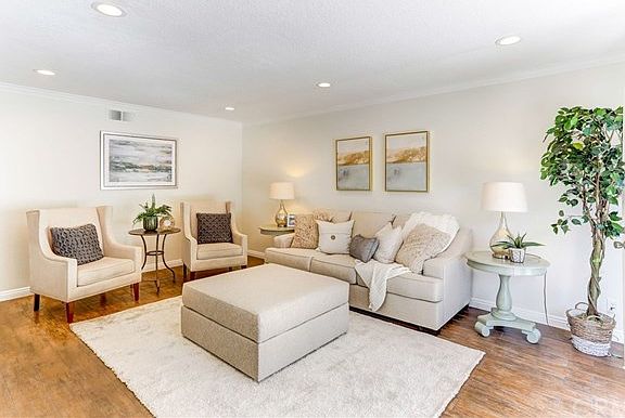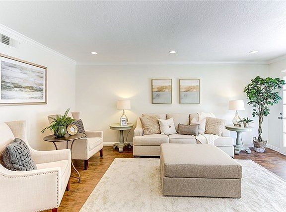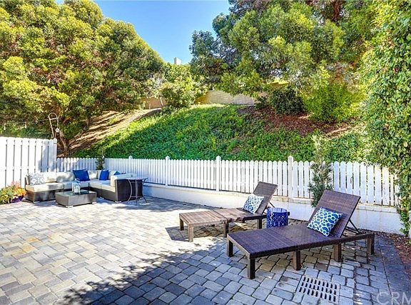 Steps to Strand Beach in the gated community of Cape Cove. From a manicured walk up enter this inviting home finished with chic neutral colors and wood-look porcelain tile floors which extend throughout the living areas. Just off the entry is a light and bright casual dining room with a large courtyard window. Adjacent is a fully upgraded chef's kitchen with all new cabinets, quartz counters, new fixtures and lighting, and featuring high-end appliances. Beyond, the dining room looks out to a spacious entertainer's patio and is opposite a cozy central fireplace from a large living room. Off the living room French doors lead to an oversized paver patio space which is perfect for entertaining. Back off the entry, a half bath and a laundry room complete the lower level. A picture window anchors the reimagined stairs which have new carpet and beautifully updated woodwork and hand rails. With all new carpet throughout, the upper level starts with an inviting master suite which has a walk-in closet, a second wall closet, exterior balcony and a luxurious spa-like bath with dual sink vanity, quartz counters, a stunning shower and updated lighting and fixtures. Two secondary bedrooms, each with mirrored closet doors and one with balcony access, and an updated guest bath complete the upper level. Enjoy an enviable coastal lifestyle walking to world class beaches and resorts with fantastic dining, shopping and entertainment at Dana Point Harbor and Downtown Dana Point just minutes away.