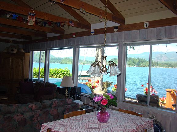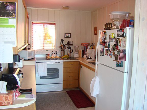 Lake Cavanaugh lakefront cabin on large level lot. Sunny spot with really nice beach and dock. Cabin main floor has kitchen, dining room, living room, bedroom, bath. Upper level is set up as 2 bedrooms. Detached 1 car garage used for boat storage. Lots of room for more development on this lot. Back is included is sale.