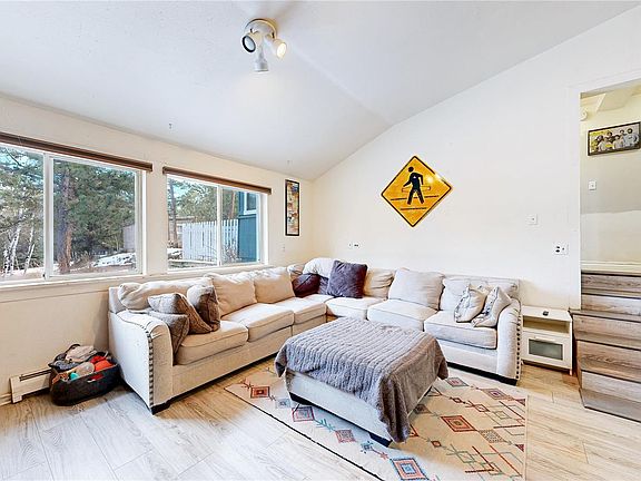 The two primary units each feature 2 bedrooms, 1 full bath, a full kitchen, and in-unit laundry, creating comfortable, self-contained spaces suitable for long-term living or rental use. Large windows highlight the home’s mountain aesthetic while welcoming in ample natural light.