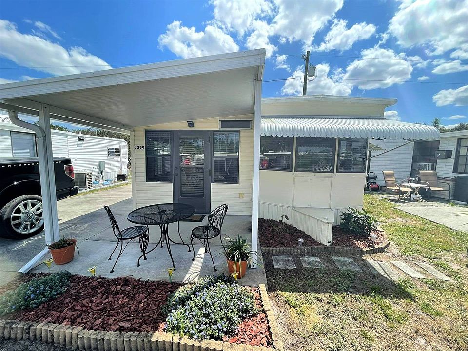 Furnished 1 Bedroom 1 Bath home with carpeted Florida room with wall A/C. Florida room also has a storage room w/ washer and dryer. Main home has tons of built-ins for storage and roof air. It also has newer floors and an AMS roof. It also has a great front covered patio out front and an additional storage shed. Move in Ready!