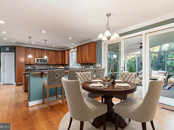 Nestled on a .37 acre lot and set back from the road with a fenced where a gate can be added and backing to lush parkland in the heart of Falls Church, this exquisite 6 bedroom, 4 full, 2 half bath, custom Colonial has it all—location, a stately 4 sided brick exterior, 3-car side loading garage, expert landscaping with an in-ground sprinkler system, brick walkways, portico entry, rich hardwood flooring, high ceilings, decorative moldings, custom built-ins, 4 fireplaces, dual staircases, gourmet kitchen, sunroom, luxurious owner’s suite, an abundance of windows, and countless designer finishes—making this home a must see! ****** Gleaming hardwood flooring in the foyer welcomes you home and continues in the formal living room highlighted crisp crown molding and an elegant fireplace with marble surround serving as the focal point. Opposite the foyer, the formal dining room echoes these design details and is accented by wainscoting and a contemporary glass-shaded chandelier lending refined style. The gourmet kitchen stirs the senses with gleaming granite countertops, an abundance of upgraded wood 42” cabinetry, designer tile backsplashes, and quality stainless steel appliances including double wall ovens, French door refrigerator, and a new gas cooktop and built-in microwave. A center island with prep sink and a tiered peninsula counter provides additional working surfaces and bar style seating. The breakfast room is the ideal spot for daily dining or step into the 4-season sunroom with descending steps to the brick walkway and overlooking majestic and serene woodlands, seamlessly blending indoor and outdoor dining and relaxation. Back inside, the sun-drenched 2-story family room beckons with walls of stacked windows with lush views and a cozy fireplace, while a wet bar makes entertaining a breeze. A library with built-in bookcases that makes a great home office, 2 convenient powder rooms, and laundry room with front loading machines complements the main level. ****** Ascend the stairs to the landing overlooking the foyer and where glass French doors open to loft with built-in bookcases that overlooks the family room below. The owner’s bedroom retreat boasts walls of windows, hardwood flooring, a deep tray ceiling with contemporary lighted ceiling fan, a sitting room with a romantic fireplace, and two large walk-in closets. Pamper yourself in the luxurious en suite bath featuring dual vanities, sumptuous soaking tub, water closet, and a frameless glass shower—all enhanced by spa-toned tile with decorative inlay. Down the hall a sunny junior suite enjoys a private bath, and 2 additional spacious bedrooms share a beautifully appointed dual entry hall bath. ****** The expansive walk-out lower level recreation room has plenty of space for games, media, exercise, and simple relaxation in front of a 4th gas fireplace. Two additional legal bedrooms and an additional full bath make an excellent guest suite and versatile space to meet the demands of your lifestyle, and a huge unfinished utility room adds plenty of storage space—thus completing the comfort and luxury of this wonderful home. ****** All this can be found in a peaceful setting with no HOA that feels miles away from the hustle and bustle yet centrally located inside the beltway in Falls Church where you can enjoy some of the finest shopping, dining, entertainment, and recreation experiences the area has to offer including Holmes Run Stream Valley Park, and the Mosaic District with trendy restaurants, retail shops, outdoor concerts, and the Angelika Film Center. For a rare combination of privacy, elegance, and functionality, in a stellar location, this residence is a perfect place to call home!