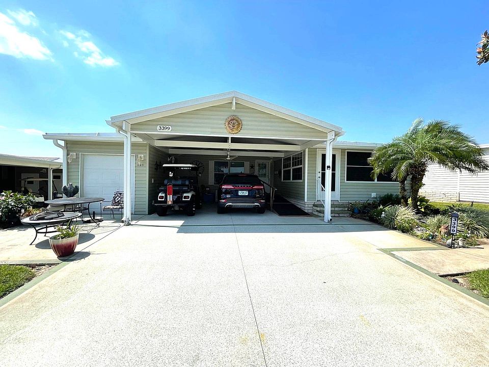 This is a well maintained 3 bedroom 2 bath w/ an enclosed air and heated patio. It has an oversized double carport with a golf cart garage/work shop/storage. It has a large living area with newer laminate flooring. The large kitchen has tons of storage with double sink, dishwasher, newer refrigerator, and a huge island with space for sitting. Off the side of the dining area is the walk-in laundry room with closet. It has a large master suite with walk-in closet. The master bath has barn style doors, built in linen, and a step in shower. The second bathroom has a a shower tub. The large patio has been enclosed with glass windows to make an additional living area. It has a golf cart garage with plenty of storage. It has central air and heat throughout. It has great curb appeal with a painted oversized driveway and curbscaping around the flower beds. A concrete walk way leads out back to a large patio.