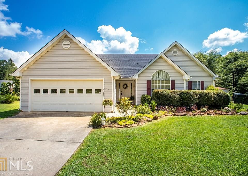 Situated on over an acre on a private lot w/ beautiful flower gardens & views, this single story home is low maintenance living! Greeted w/ gorgeous wood laminate flooring & ushered into the vaulted ceiling living/dining rm. Cozy stone fireplace surrounded by windows that flood natural light in w/ back door leading to private patio. Adjacent eat in country kitchen overlooks living rm. Down the hall, 3 beds including spacious master w/ tray ceiling & en suite bath w/ double vanity & garden tub. A full bath separates master from 2 more bedrooms. Home warranty offered!