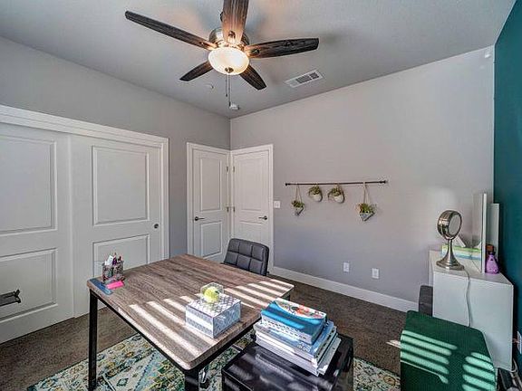 1 year old home in new neighborhood backing to greenbelt with 4 bedrooms, 2 bathrooms, quartz counters, stainless appliances, home is. furnished and includes all appliances plus washer, dryer, refrigerator, and chest freezer. Near Sun Oaks Fitness Center, Shopping, Schools, and Parks. Available unfurnished at $2800 per month. Owner pays for yard service. Completely furnished.