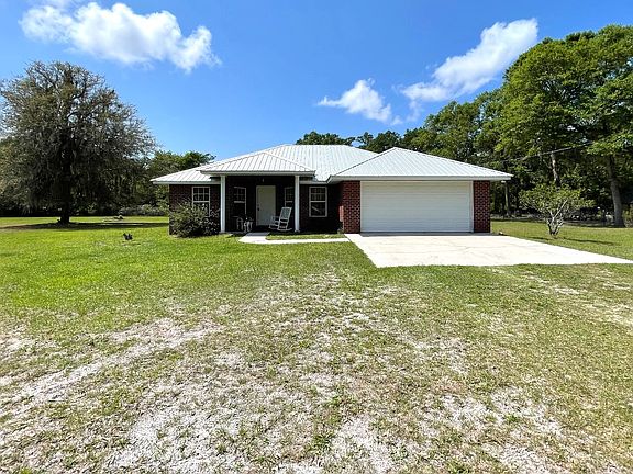 Nice 3br/2ba brick home built in 1997 - 2,084 total sq ft. with brand new metal roof on a gorgeous 2 acre completely fenced & gated lot. This home has split bedrooms, a living room, family room, dining room, large kitchen with plenty of oak cabinets and breakfast bar. Walk-in shower in master bathroom, 2 car garage, security system, large screened in back porch, a storage building with concrete floor & electric, & a large farm shelter with concrete floor & chicken coop on the end. No HOA, plenty of room for a horse or garden! Great place for your family & a mini-farm!