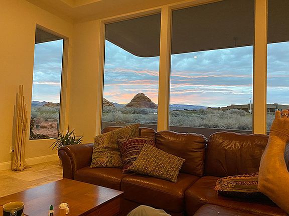 Transitional southwestern design. Travertine tiles, view of Zion, 360 views solid wood cabinets, high scale appliances and hardware. Rooftop patio. Gas fire pit