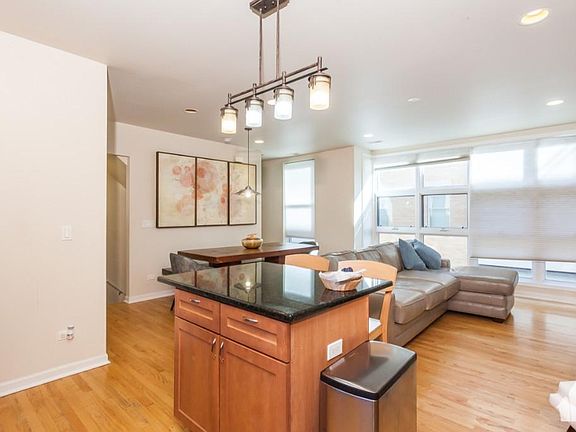 Spacious, light-filled 4-story townhome with 3 bedrooms and 2.5 bathrooms! Tons of space! Floor-to-ceiling windows allow for gorgeous natural light. Kitchen and living area features an open floor plan perfect for entertaining. Hardwood floors throughout the main level, including the kitchen! Kitchen also boasts a large center island, stainless appliances and granite countertops. Third floor features a full bath, two bedrooms, ample closet space and laundry. Penthouse master-suite expands the entire top floor with outdoor access to balcony. Enjoy the cathedral ceilings, large custom walk-in closet and en suite master bath! Additional highlights include attached over-sized garage plus additional 2nd parking space in front of garage. Large fenced in private patio/yard. Close to 90/94 and many other public transportation options. Available November 1st. Dog friendly with a fee.