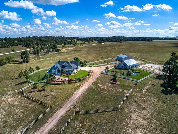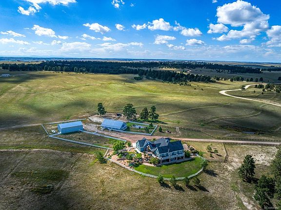 Colorado living at its finest!! Custom-built 67 acre gem located minutes from Kiowa's shopping and amenities...unparalleled attention to detail in an exquisite setting....this is truly a one of a kind piece of paradise with a perfect balance between convenience and solitude! As you drive up the long driveway lined with rolling pastures and trees you cannot help but fall in love with the feeling you have that this is a special place.The property offers a creek bed and seasonal pond as well as being fenced and cross fenced making it all ready for your horses! This sprawling ranch home with a wrap-around covered porch is flooded with light and rich with high-end finishes and amenities throughout, an entertainer's dream! Over 5,000 finished square feet with vaulted ceilings, incredible architectural detail throughout, an abundance of windows, extensive hardwood floors, and open floor plan. HGTV featured sunroom! 5 stall Barn, 2340 sq. ft. shop/garage/workshop, 1320 sq. ft. caretakers home..