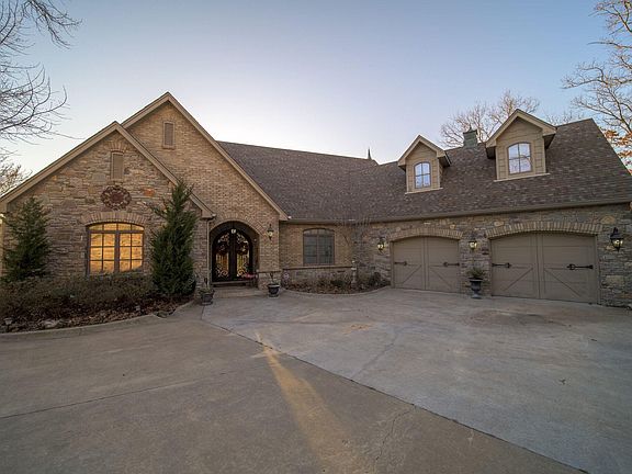 ELEGANT WATERFRONT HOME in Big Hollow, 240 ft of Grand lake shoreline, huge covered boat dock, 3 slips, 45'x16' slip, wave runner ports, sundeck, storage and concrete path for golf cart to the dock walkway. Custom built French Country design features an open living, easy flow from living area though kitchen & Dining to family room, perfect when entertaining. The living area features vaulted ceiling, wall of windows, ceramic tile flooring and gas log fireplace. Kitchen features large island, eating bar and exotic granite countertops, custom cabinetry. Other features include office, master suite & guest suite on the main level, additional guest suite on the 2nd floor. Lower level features Family Rec room with wet bar, 3 guest bedrms & 1full & 1/2 baths. Road to be Blacktop in May 2020.