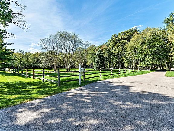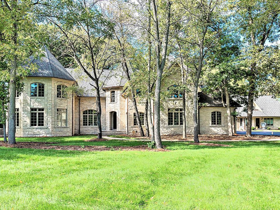 Opulent and Sophisticated Custom Stone Manor featuring an exclusive private 1,447 SF Guest House - perfect for in-laws! Tucked away on over 4 acres of wooded privacy, yet conveniently located near the heart of town. Elegantly appointed with the finest craftsmanship and distinguished architectural design. Premium features include a posh Flexi-Lift 3-story Elevator, extensive millwork and custom cabinetry, solid cherrywood doors, five fireplaces, top-line appliances, blue-ice granite countertops, radiant heated-tumbled marble floors, Brazillian cherrywood flooring, 9-Zone radiant heating, 4-zone central air, 400 Amp electrical service and Kohler whole-house generators. The inviting grand foyer welcomes you into the soaring Formal Living Room boasting a floor-to-ceiling stone fireplace and Juliet balconies. Entertain in the Formal Dining Room, Gourmet Kitchen and two-story Great Room featuring a cozy fireplace and stylish wet-bar, with access to the expansive Bluestone patio featuring an outdoor stone fireplace and built-in barbeque grill. Work from home in the sophisticated two-story office with a balcony overlook, featuring a brilliantly crafted spiral staircase leading to the second-floor library and gentleman's den/parlor. Retreat to the main floor Master EnSuite featuring a custom crafted fireplace, luxury bathroom and French doors leading to the patio and garden. The second floor offers an ensuite bedroom/bathroom and 2 additional bedrooms with another full bathroom. Convenient main floor laundry room and owner's entrance. The full area deep-pour basement features a full bathroom and two fireplaces. The private guest house offers the 5th and 6th main floor bedrooms, a loft overlooking the great room and formal dining room, a full kitchen with breakfast room, a full laundry room and a full basement. This is the answer to the changing ways of lifestyle!