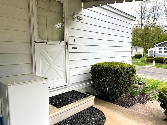 Here is another great opportunity to obtain affordable retirement living at Hampden Village. This single wide mobile home features a brand new roof and a brand new paved driveway! This home has two spacious bedrooms and a full bath with a step in shower. It has an oversized eat in kitchen that will easily accommodate an ample sized dining set and also has generous counter space and an abundance of storage! This home also features a covered patio and will soon have fresh new grass as well! This one won't last long so make your appointment to see it today! Buyer must be age 55 or older and is responsible for obtaining park approval. Lot fee is 437.00/month and includes taxes, water, weekly trash pickup and use of community clubhouse, dog park and heated inground pool in season. Seller has never lived in the home and private showings can be scheduled beginning on Friday May 17, 2024.