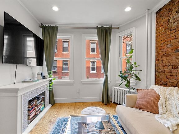 This charming one-bedroom, one-bathroom condo offers approximately 375 square feet of cozy living space. The bright living area features large windows, while the kitchen has modern appliances and ample storage. The bedroom boasts a large closet, and the bathroom includes a shower and storage vanity. High ceilings, exposed brick walls, and hardwood floors add character. Located one flight up, this unit is not street-level. A great investment with strong rental history or an ideal pied-à-terre. Residents enjoy a common roof deck with views of Beacon Hill, Back Bay, and the Charles River. Conveniently located near MGH, T stations, restaurants, and downtown amenities. The building is professionally managed. Short-term rentals are not allowed; leases must be at least one year. Extra storage is available in the basement. One domestic pet under 50 pounds is allowed with prior written consent from trustees. The condo fee includes heat and hot water. This is a non-smoking building.