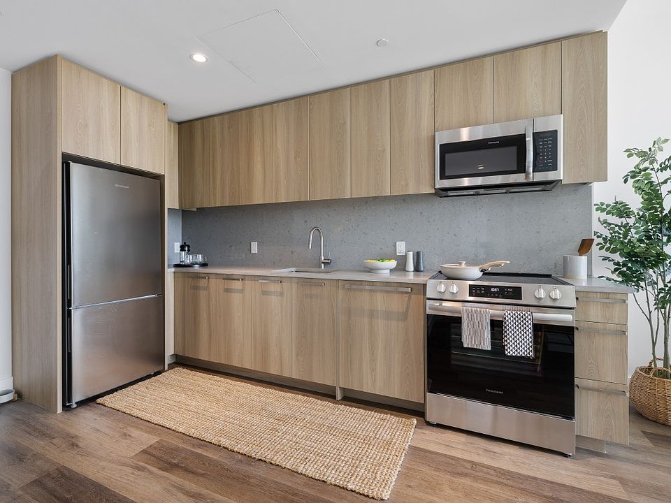 Stainless steel appliancesPorcelain tile flooringSpa-like rain showersQuartz countertopsLobby loungeBrushed nickel hardware