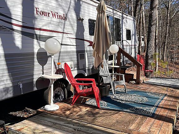 *Located in the highly sought after Coosewattee River Resort community, this RV sits on a large lot on the exclusive 3rd st, prime location just 2 minutes from the Legion Road Gate, 10 minutes from shopping in downtown Ellijay. This 2006 38’ RV has the ability to sleep 6 with 2 separate bedrooms and a sleeper sofa. 1 bath with a shower and full size toilet. Kitchen has a large refrigerator, gas stove top, oven and plenty of cabinets. Private entrance to 1 bedroom and living room has sliding doors. Previous owner had water damage. Roof has been rubber coated and sealed. Great location to relax on the deck and watch the abundance of deer walk thru the lot on their deer path. The Coosewattee River is within view and just down the street is a pool, dog park, walking bridge to the large riverfront park. This beautiful gated community offers 2 outdoor pools, 1 indoor pool, tennis, pickle ball, putt putt golf, riverfront parks, walking trails, riverfront parks, playgrounds, pavilions and scheduled community activities. Whether you are looking for a getaway or to live in this beautiful mountain town full time, this RV and lot has a lot of potential. The lot is a deeded parcel and the RV is by Bill of Sale.