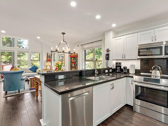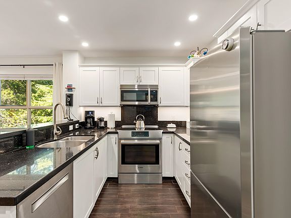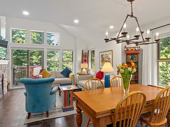 This ski in townhome at Treeline is located in one of the most desirable locations in the complex. As an end unit on the front row, it has beautiful, treed privacy with large windows and plenty of natural light. The clever design offers convenient ground level access from the parking and only has one neighbour. Totally renovated including updated kitchen, heated flooring, refaced fireplace, renovated bathrooms, and new lighting throughout. This well-maintained home is move in ready with new hot water tank and new washer and dryer. Treeline offers a hot tub, underground parking and ski out access from Blackcomb. It is within a few minutes to Lost Lake Park, the Chateau Golf Course and the free shuttle is literally at the entrance. No GST, but short term rentals are permitted.
