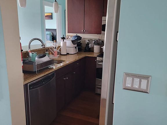 Freshly painted apartment with free garage parking and City views from the balcony. One of the few modern buildings in the neighborhood. Tenant is responsible for gas and electricity (est. $70/month). No smoking.