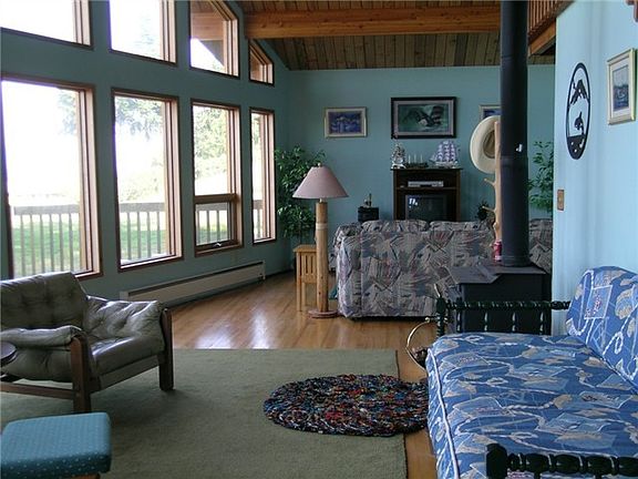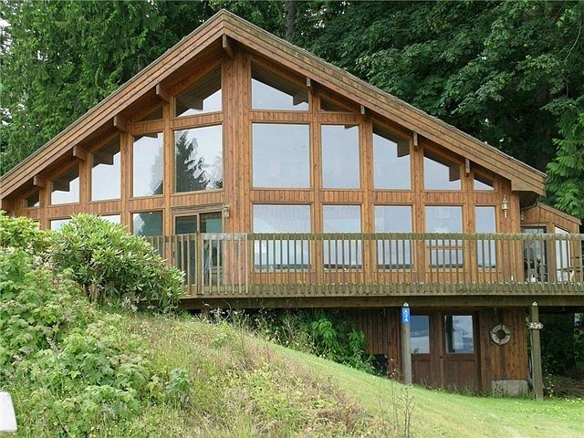 Beautiful NW cedar home designed by Linwood Homes. Unique w/views of the Sound and golf course. Gorgeous vaulted open beam ceilings accented by a huge chandelier. 22 massive windows in the living & dining area to views of Sound, Mt. Baker and Olympics. Ext. wood floors and staircase to the loft. The kitchen is open and bright with a skywall of glass. Plenty of dining and sleeping capacity in this home for the perfect getaway. 1100 sq. ft. bsmt. w/workbench, laundry, and storage. New Roof!