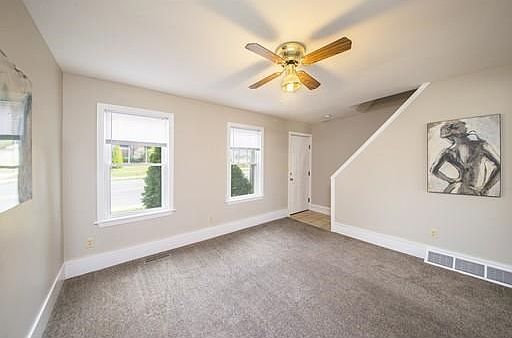 Conveniently located 2 bedroom 2 bath town house. First floor offer large open kitchen, living room and bath with shower. On the second floor there are 2 generous bedrooms and full bath with tub and shower. On the 3rd floor is your surprise bonus room with skylight. Great for home office or rec room. Most rooms freshly painted and newer carpet. This town home also offers a full basement great for extra storage and houses your washer and dryer. 2 deeded parking spots as well as good sized brick patio convey with this unit. Forced air gas furnace and central air.