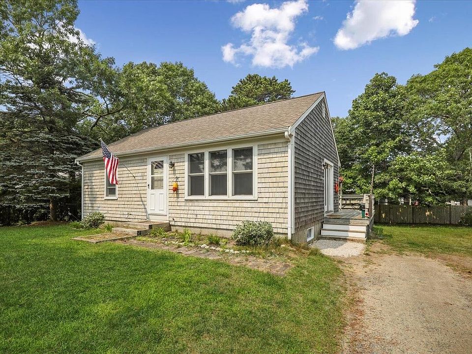 Take time to slow down, step back, and smell the ocean breeze streaming off of Nantucket Sound in a strong SW afternoon wind. 1.9 miles from Seagull beach and walking distance to route 28 attractions this well built 2 bedroom Cape with open floor plan is ready for new owner. Convenient wrap around back yard porch and shed. Partially finished basement with bulkhead access has room for expansion and storage. Full size closets and extra storage in attic space. Custom concrete countertops and stackable washer/dryer in kitchen. Plenty of time to buy this home and enjoy the second half of summer 2021!