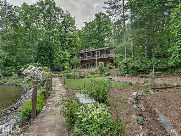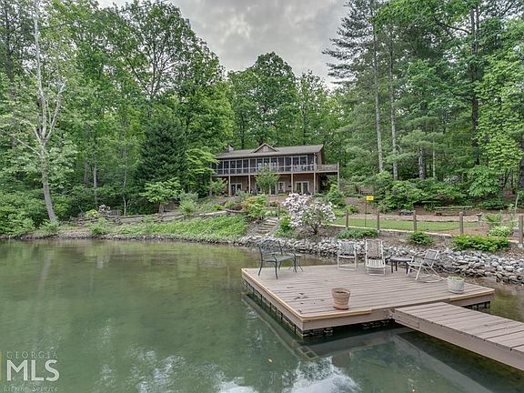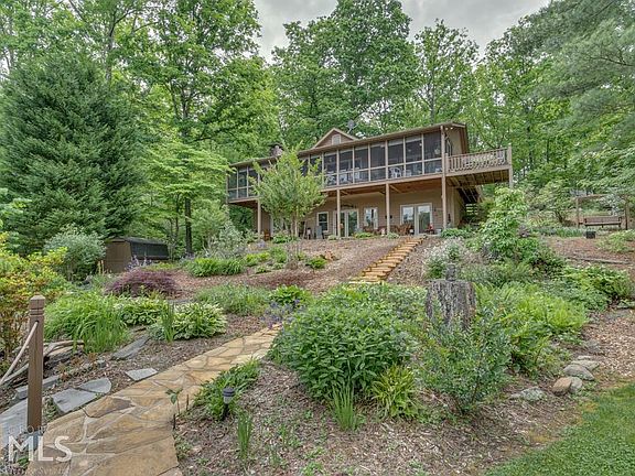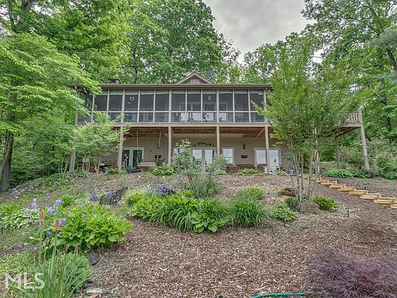 3BR/3.5BA Lake Burton home on 1.64 acre level lot. Beautifully landscaped & covered with native shrubs, hardwoods & pines. Great room w/ floor-to-ceiling wood burning FP. Main level w/ screen porch & grilling deck. Lg kitchen with hardwood floors thru dining area. Carpeted master suite on main level & opens to screen porch. Adjoining master bath has dbl vanity, tub/shower unit & walk-in closet. Powder room on main floor. Finished lower level w/ family room, 2BR (1 w/ fireplace) with adjoining baths and laundry room. Winding drive & split-rail fence lead to a double carport w/ attached storage bldg & pull-down attic storage. Meandering rock steps lead to 2-slip boathouse. Easy access to spacious GPC lot w/ 173 ft. of shoreline & branch for NE boundary.