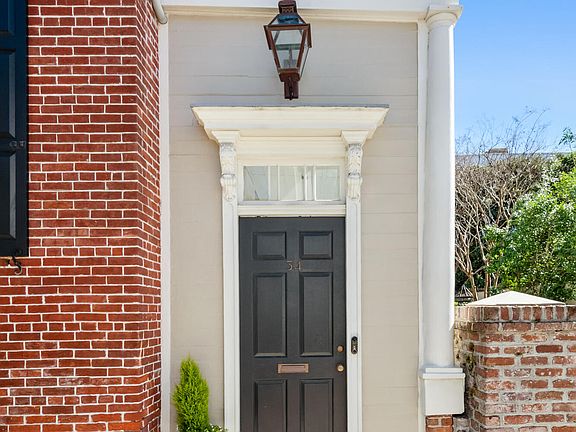 34 Anson is an exquisitely beautiful example of Charleston's finest architecture. Proudly situated in Ansonborough, one of Charleston's most picturesque and coveted neighborhoods; this 1848 Charleston Single masonry home was meticulously renovated in 2019 by Artis Construction blending all her historic charm and elegance with modern luxury. The natural light in this home is extraordinary, enhancing 3 floors of beautiful, spacious, and well proportioned accommodations, perfect for full or part time luxurious living. Some of the iconic features include: Original heart pine floors & woodwork, formal living & dining rooms, stunning designer kitchen, exquisite stone and marble bathrooms and a delightful powder room tucked under the attractive solid central staircase. Exterior delights:This Charleston Single home has a charming street door which leads to the 1st floor quintessential full length piazza - perfect for entertaining or enjoying the seabreeze whilst relaxing. There is a private courtyard for al fresco dining, enhanced with old brick and pretty landscaping as well as parking for your car and/or golf cart. Location is perfect - a short stroll, meandering down ancient lanes and snickets allows easy access to Charleston's finest dining, shopping, art galleries and cultural landscapes. Return home to a quiet oasis of picturesque charm. The beauty and well thought out design is obvious in this house - Original entrance foyer off the piazza leads to the formal living room on the left, and formal dining room to the right. Both rooms are large with functioning gas fireplaces. The efficiently designed kitchen is spacious with high end appliances fixtures and hardware; gorgeous marble, and custom cabinets, including 'secret' space. The 2nd floor landing allows access to the other Charleston historic essential - the second full length piazza, perfect additional outdoor living space. A beautiful large study or den with bookcases and a third functional gas fireplace is to the front of the house. Also on this level is the large primary suite with decorative fireplace, private access to the rear part of the piazza, and a relaxing bath with walk in shower as well as a Victoria and Albert soaking tub. Flooring is exquisite stone/marble basketweave. The third floor comprises of 2 very good sized bedrooms filled with natural light and awe inspiring views of steeples and rooftops. Both bedrooms have full height ceilings, decorative fireplaces and double closets. A Guest bathroom completes this level. A wonderful added feature to this house is easy access to great storage under the home complete with battery back up sump pump and dehumidifier; shelving and light. There is also a very clever storage drawer under the piazza. Renovations included new electrical, plumbing, ductwork etc. New HVAC units 2021-2025, roof resealing, reverse osmosis water filter system, Watercop sensor/shut off for leak detection and much more... (Certain personal items do not convey, please ask for details)