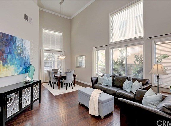 Absolutely STUNNING home in sought after Pacific Hills! Fabulous floor plan with FIVE bedrooms (one bedroom down)! A custom dramatic wrought iron stairway greets you as you enter to soaring cathedral ceilings and wonderful light. Spacious formal living and dining rooms are welcoming with warm engineered hardwood flooring, designer neutral paint, elegant crown and baseboard moldings, and updated lighting create great areas for entertaining guests. The AMAZING kitchen (just completely remodeled) and family room spaces are the heart of the home. With a center island, quartz counters with marble tile backsplash, stainless steel appliances, upgraded fixtures and lighting, a custom pantry and banquette eating area, the kitchen will not disappoint. The adjoining family room is complete with a custom entertainment center and a stacked stone fireplace and hearth. A bedroom and remodeled bath complete the lower level. Upstairs the master suite features a remodeled bath area with soaking tub, separate shower, marble counters with dual under mount sinks, updated fixtures and lighting and ample closet space. Three additional bedrooms, a guest bath with a dual sink marble counter vanity and a laundry room completes the upstairs. The backyard offers a fantastic covered patio space and a large grassy area, making this the perfect place to play or entertain. Adjacent to a neighborhood park, this FANTASTIC home is close to schools, shopping, freeways & more with Lake Mission Vie