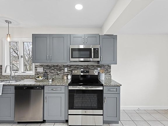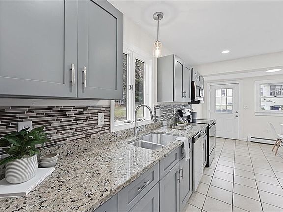 Open house 11am-12:30pm April 27 & 28th. This lovely 3 bed 2 bath just renovated single family home located in quiet Dracut neighborhood features an enclosed three seasons front porch space that leads right into a sundrenched living room, sitting room and dining room open floorplan. Enjoy the just renovated eat-in kitchen boasting modern finishes, new stainless steel appliances, shaker cabinets and granite countertops. Second floor includes two spacious bedrooms, a bathroom with new tiling and ample storage space throughout. Semi-finished basement with private entry provides opportunity to use the home as a 3 bedroom,+ another office space or entertainment room! Big private backyard space and deck perfect for hosting guests in the summer. 2023 roof. Private paved driveway and plenty of street parking. Offers due 3pm Tuesday April 30th