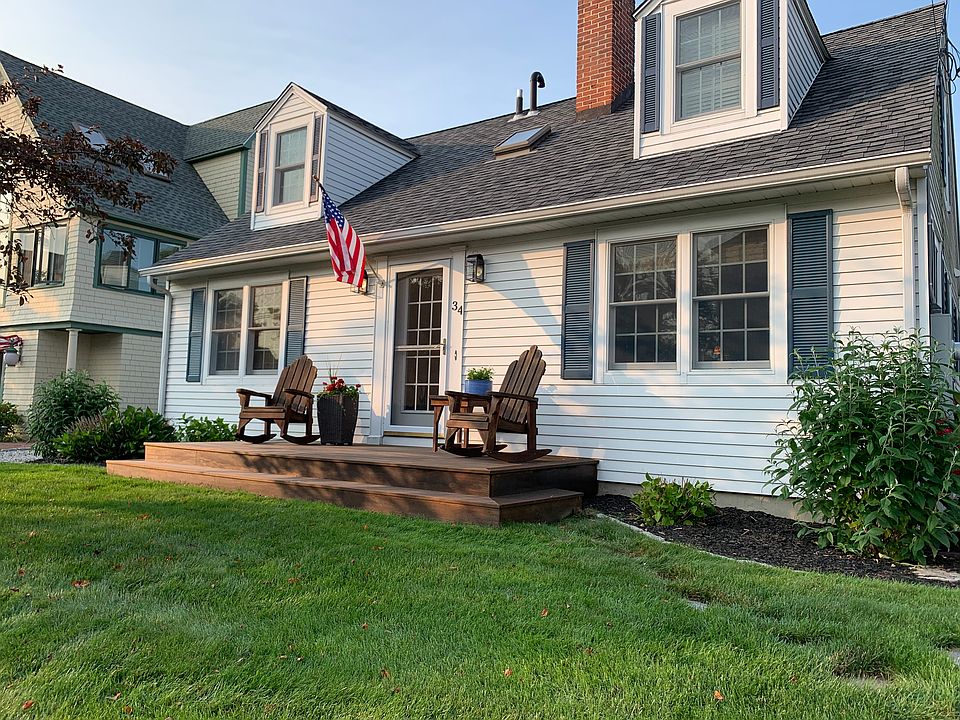 Updated cape cod with open floor plan and large screen porch with auto retractable shades. 3 bedrooms with 3 full baths and an outdoor shower. Gas heat, central air, fireplace. View of boating harbor, large flat lot backs up to open space.