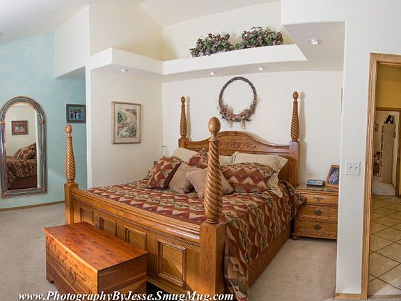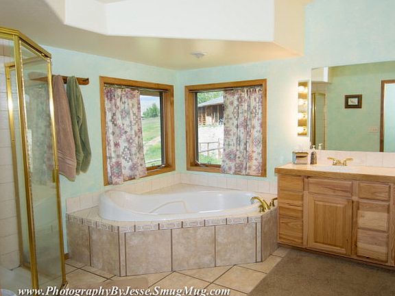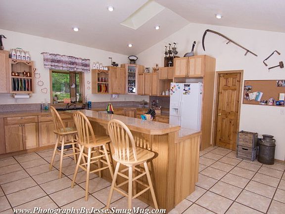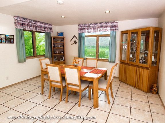 Country living with elegance and style! Inviting tile entryway leads into this beautiful custom home. Spacious kitchen with granite tile counters, breakfast bar, custom cabinets and walk-in pantry. Enjoy captivating views from the formal dining area or dine off the kitchen deck. Living room comforts include custom river rock fireplace, hardwood floors and valley views. Additional main floor features master bedroom with en suite and private deck, two guest bedrooms, office, laundry and house bath. Downstairs could possibly be a separate living area with guest bedroom, full bath, living room and independent access with private patio. Entire home has radiant floor heat for complete comfort. Outdoors you will find a beautifully landscaped yard with drip system, dog run, tree house, barn and over 4 acres of irrigated pasture. Barn includes 2 stalls, power, water, automatic waterers, & storage. Train your horse in the round pen or ride out your door a short distance to public ground. Property has water rights and includes irrigation equipment for gravity flow irrigation. This lovely home and property are located only 5 minutes from town with all the comforts you're looking for!