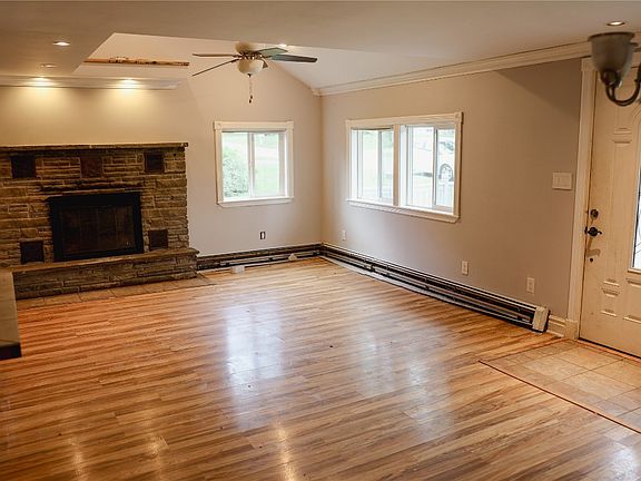 Make this house your own! Just needs some TLC and your personal touch. Walk in to your open living room with vaulted ceiling, and laminate floors throughout. Updated kitchen with all stainless steel appliances. 4 bedrooms, 3 on the first floor and one on the second floor. Beautiful backyard with walk out patio. Brand new boiler system. Washer/Dryer hook up.